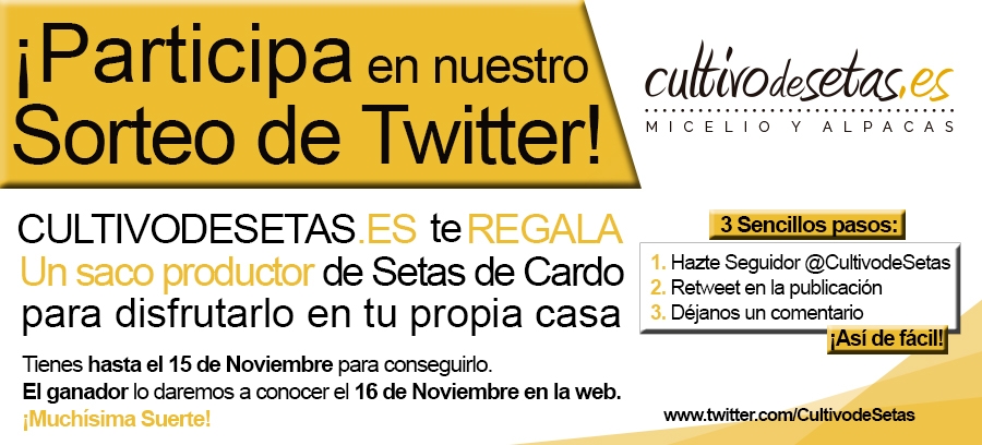 Hasta el 15 de Noviembre tienes de plazo para participar y llevarte completamente gratis un saco productor de Setas de Cardo, para que puedas disfrutar viéndolas crecer y compartirlo con tu familia.